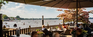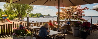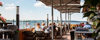 Unsere große sonnengeschützte Seeterrassen haben drei Bereiche, die Sie ebenfalls für Ihre Veranstaltungen nutzen können: