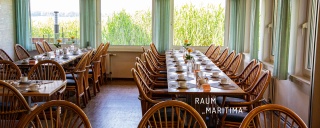 - „Seewärts“ ist unsere ruhigere Ecke (bis zu 110 Sitzplätze) mit Anschluss zum Raum „Maritima“, hervorragend für die Pausen mit Blick auf's Meer geeignet.
